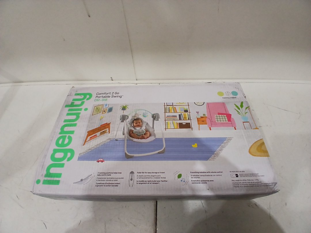 Ingenuity Comfort-2-Go battery powered Portable Swing with music - 0M to 9M - Fanciful Forest grey/white (MODEL: 10845-ES)