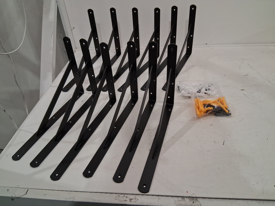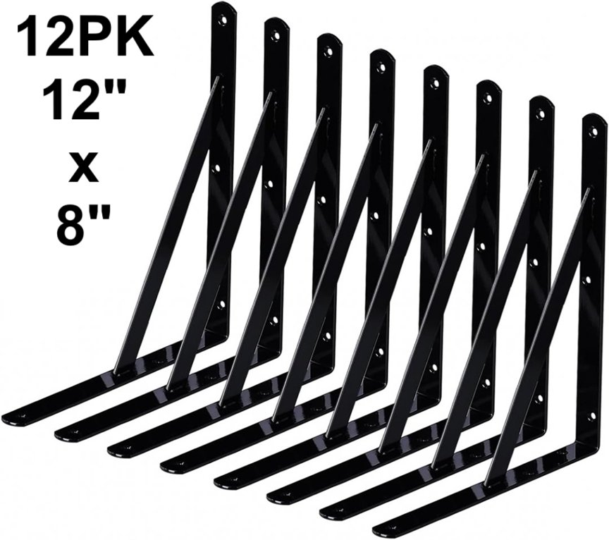 12PK Winker Black Iron Metal Shelf L Bracket - 12" x 8" - Black