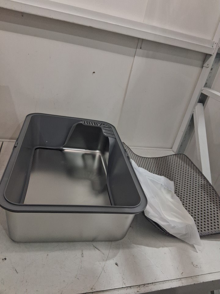 Ellenpent Stainless Steel Cat Litter Box with Lid - XL - 36L - grey (model: CH-ICB010)