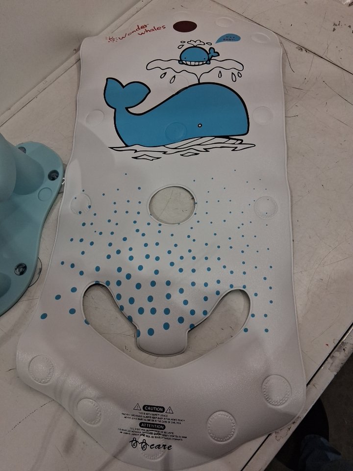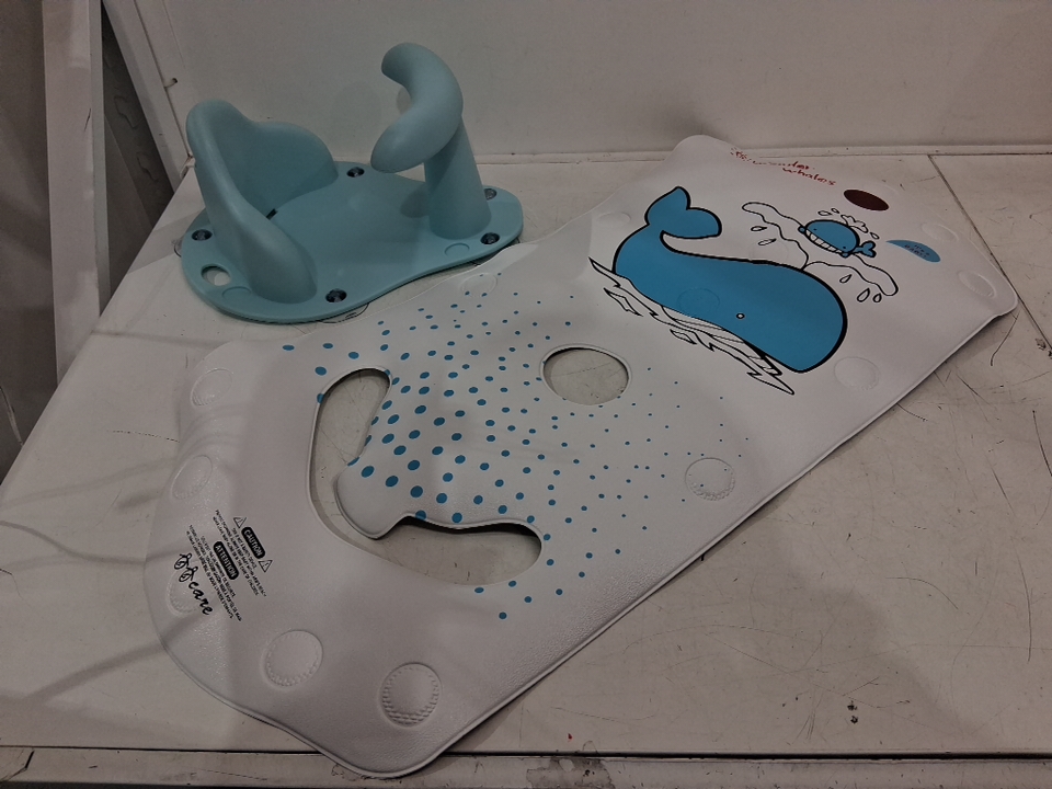 BBCARE NON-SLIP SAFETY BATH SEAT WITH EXTRA LONG BATH MAT & hot spot feature - 15" x 7" - blue whale