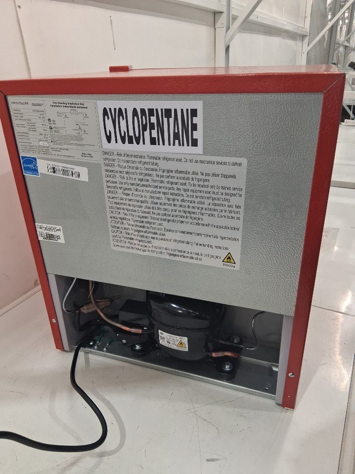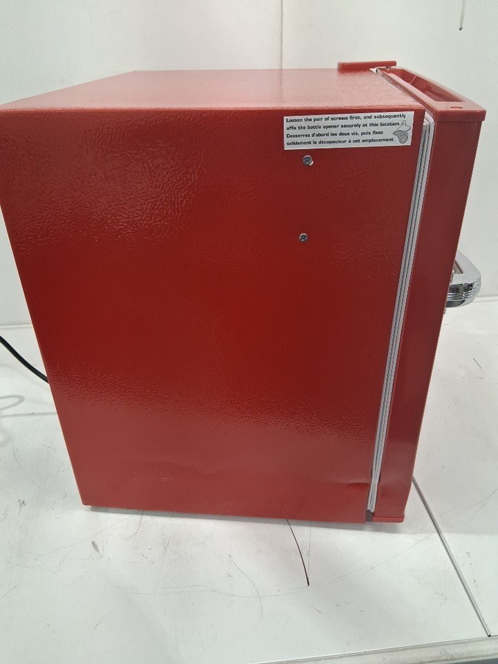 The side bottle opener appears to be missing from the packaging, additionally there are some small dents in the sides of the fridge - see photos. Outside of these issues, the fridge appears to be in good condition and function normally.