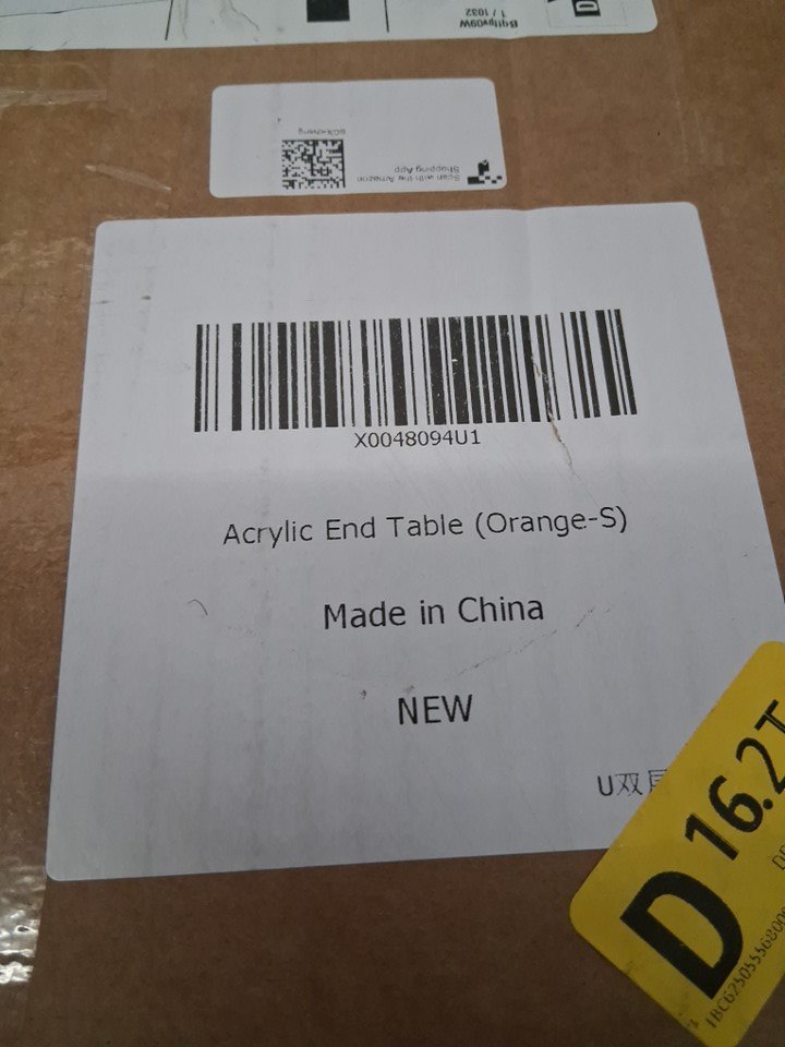 ACRYLIC MODERN END TABLE, 22" x 17" x 12" - orange