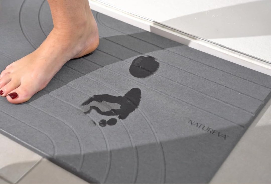 Natureva Super Absorbent Non-Slip Stone Bath Mat - 25" x 15" - Flow I Slate / Grey