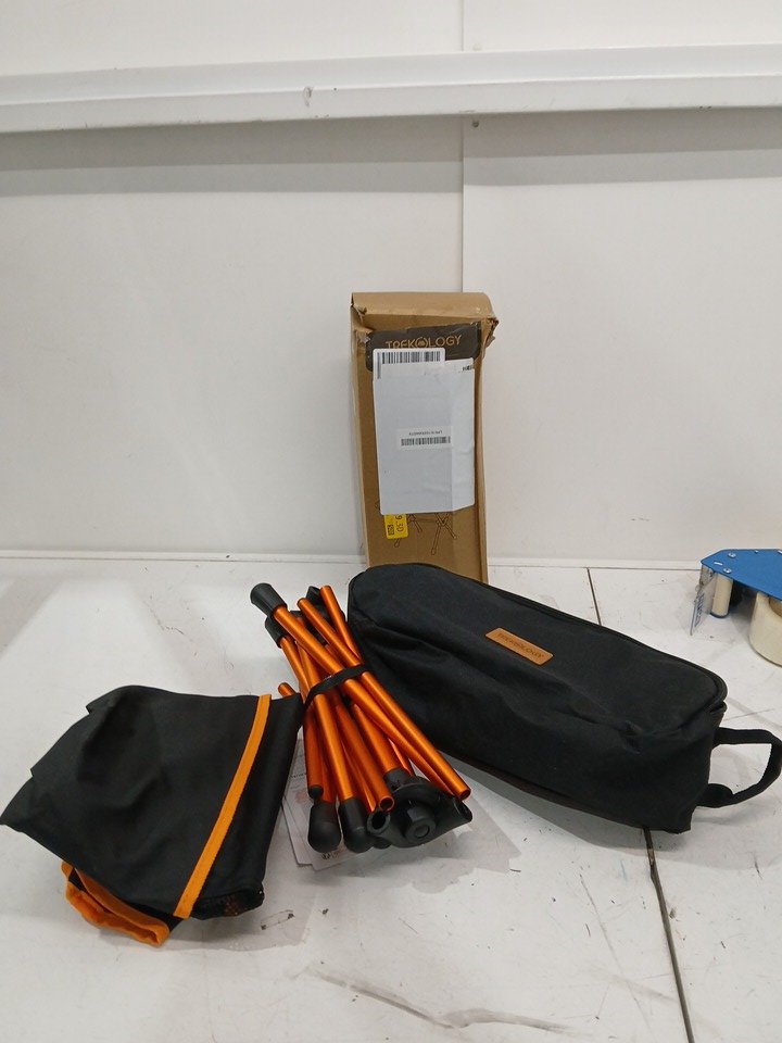 TREKOLOGY YIZI GO COLLAPSIBLE FOLDING CAMPING CHAIR WITH STORAGE BAG - 28" x 12" - 300lbs Capacity - BLACK/ORANGE