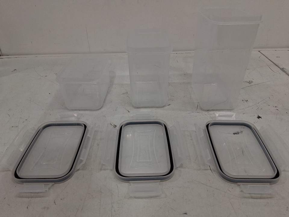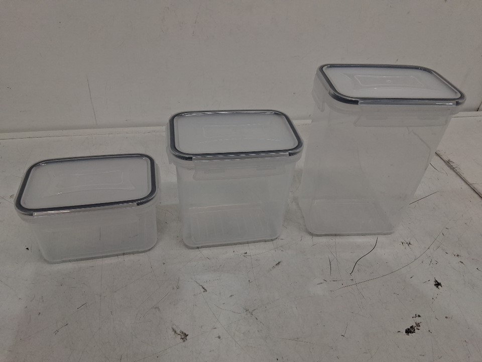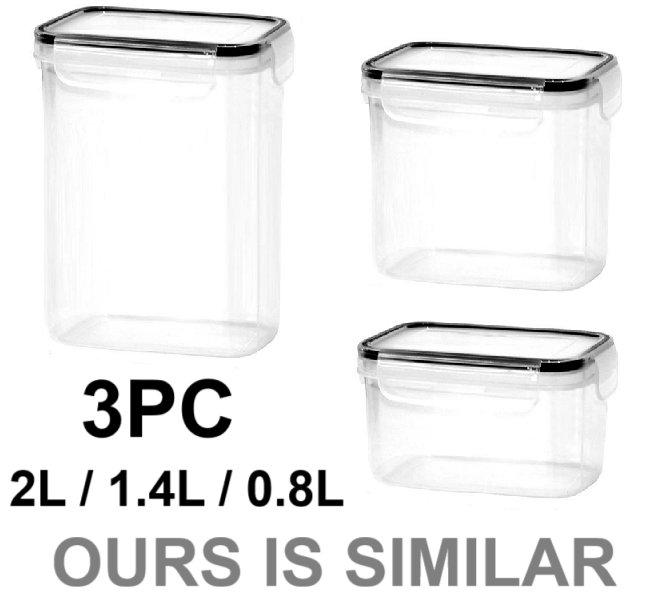 3PC Airtight Plastic Tupperware Containers with Snap Locking Lids - 2/1.4/0.8 Litres - Clear