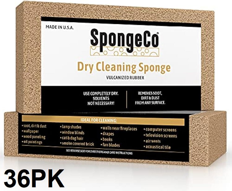 36pk SpongeCo Dry Cleaning Soot Eraser Sponge - 3" x 6" x 1.5" - brown (model: SAM-SPO-36PK)