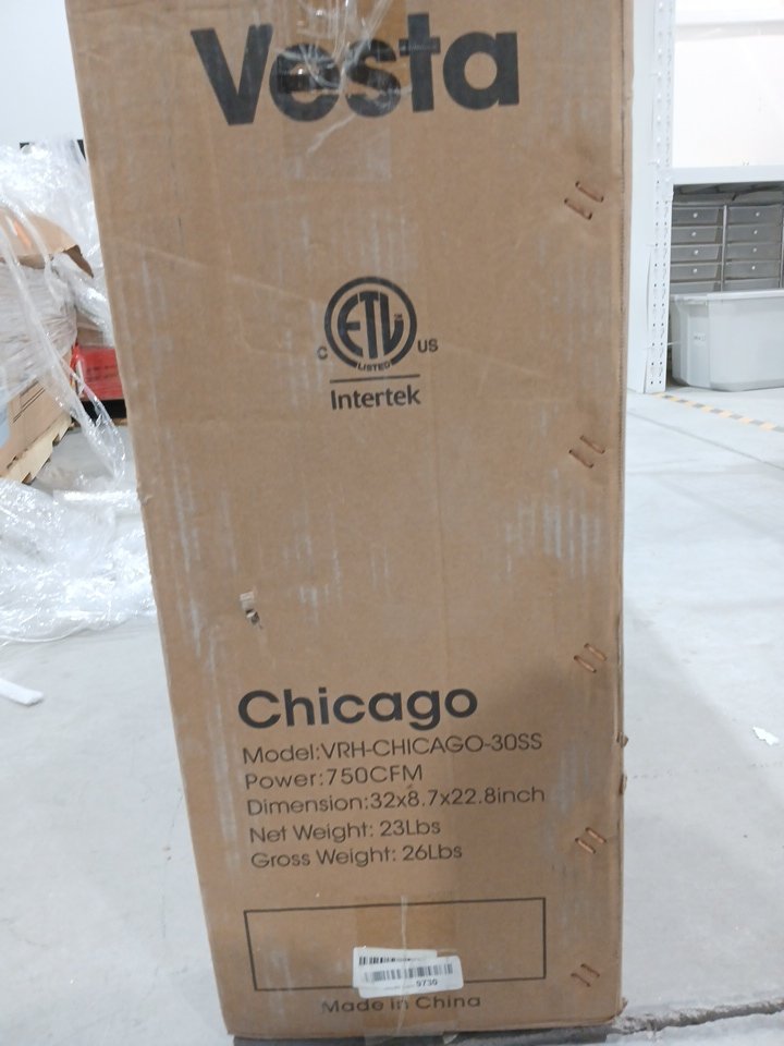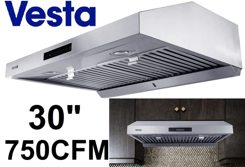 VESTA CHICAGO STAINLESS STEEL UNDER CABINET RANGE HOOD - 750CFM - 30'' WIDE - SILVER (MODEL: VRH-CHICAGO-30SS)