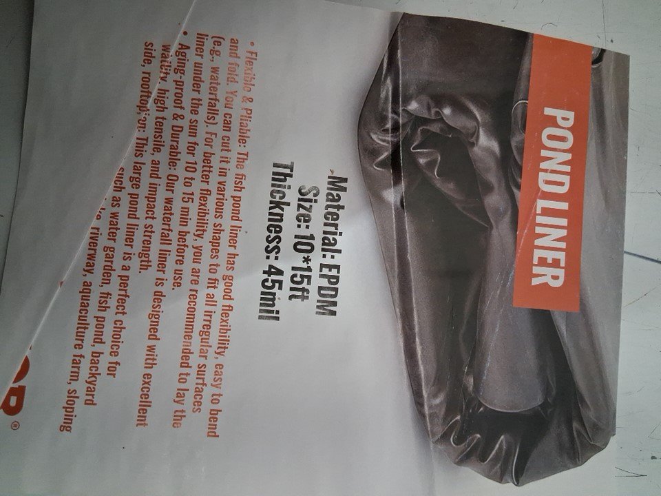 VEVOR epdm Pond Liner for Fish or Koi Ponds - 10FT x 15FT - black