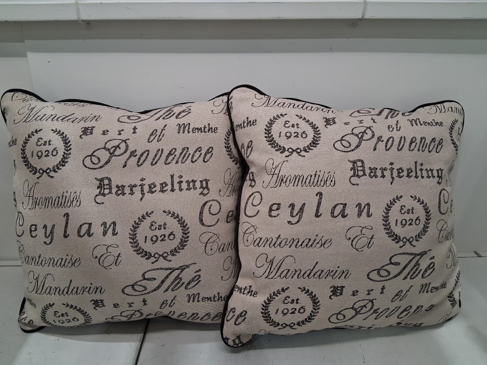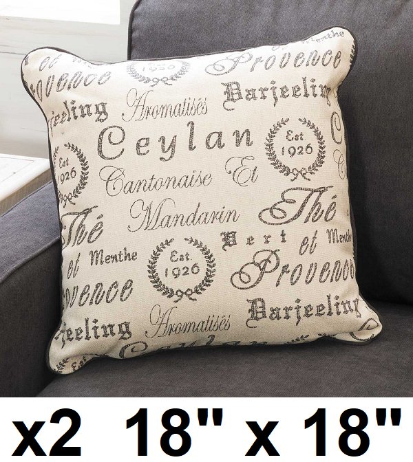 2 aleyna french script decor square pillows - 18" x 18" - black/beige