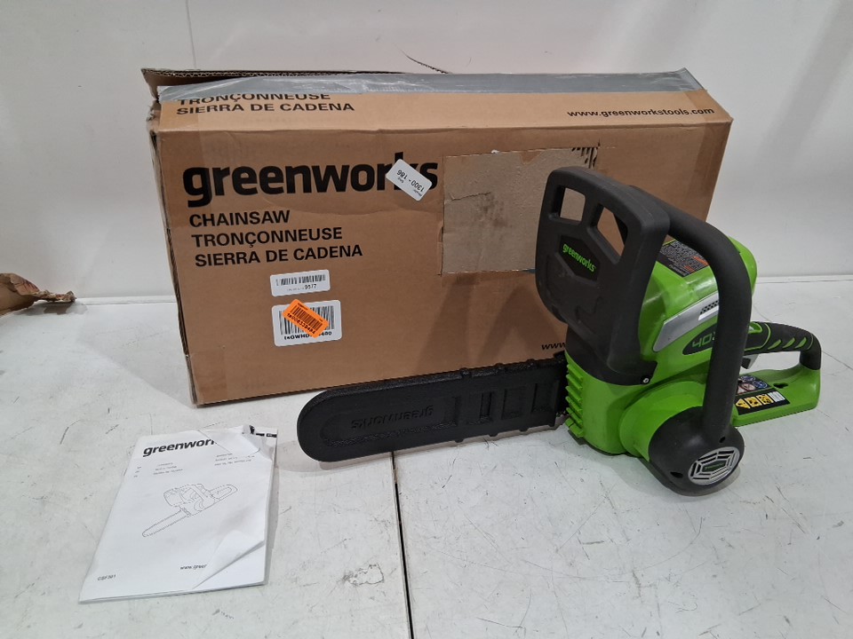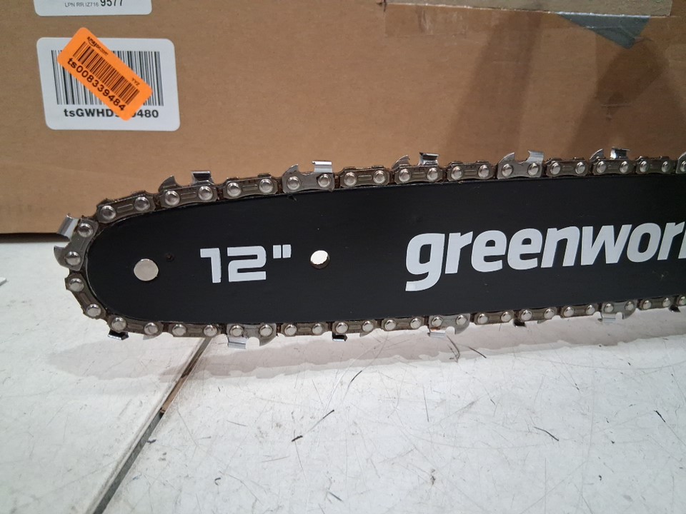 GREENWORKS CORDLESS BATTERY POWERED CHAINSAW, 12" BLADE, 40V - TOOL ONLY (MODEL: 2000900)