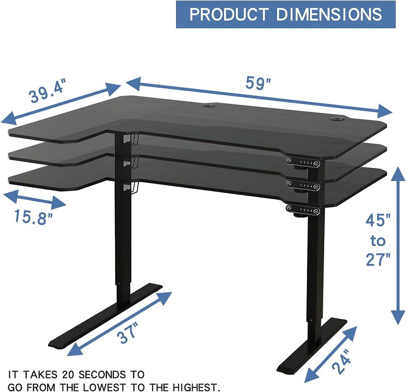 Bilbil L-Shaped Electric Height Adjustable Standing Desk - 59" - Black - (Model: L59)