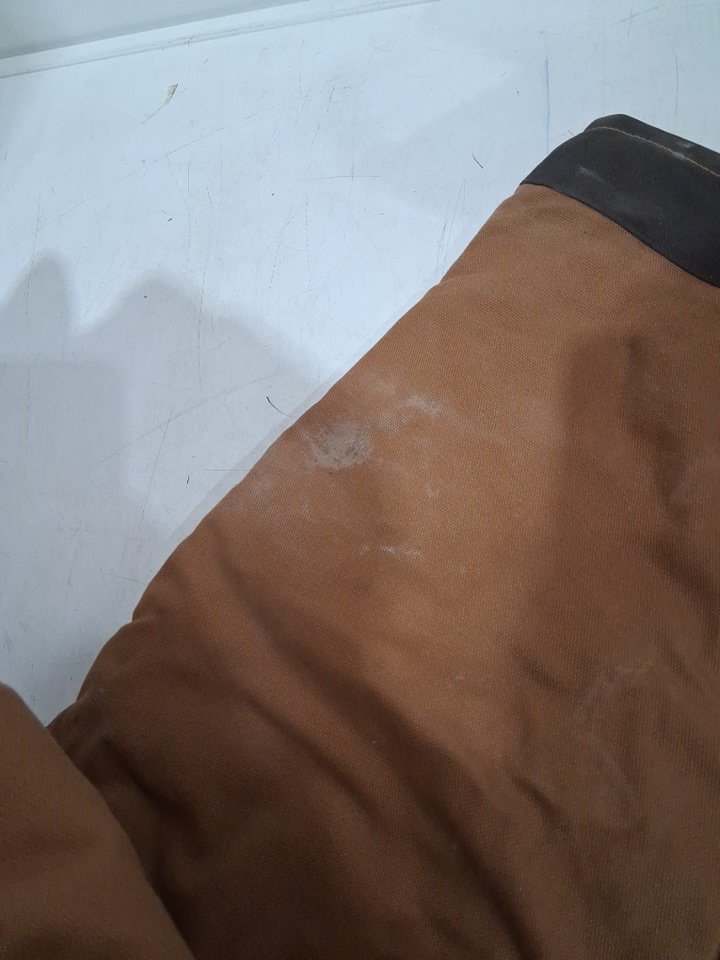 light dirt on the ends of the over all as well as some small marks near the front leg of the pant.