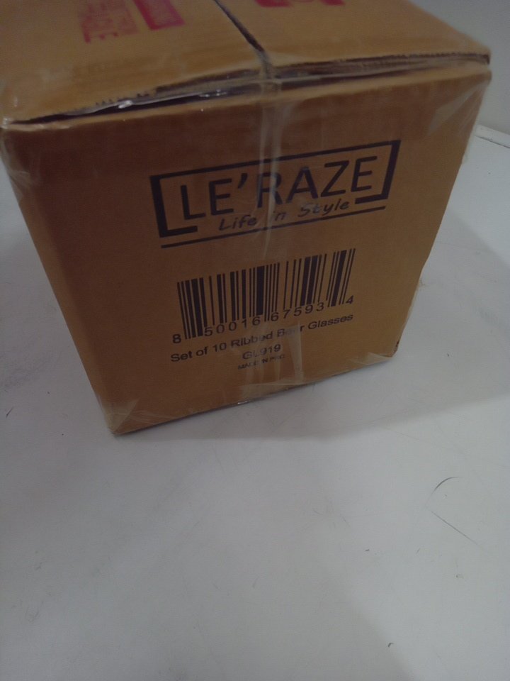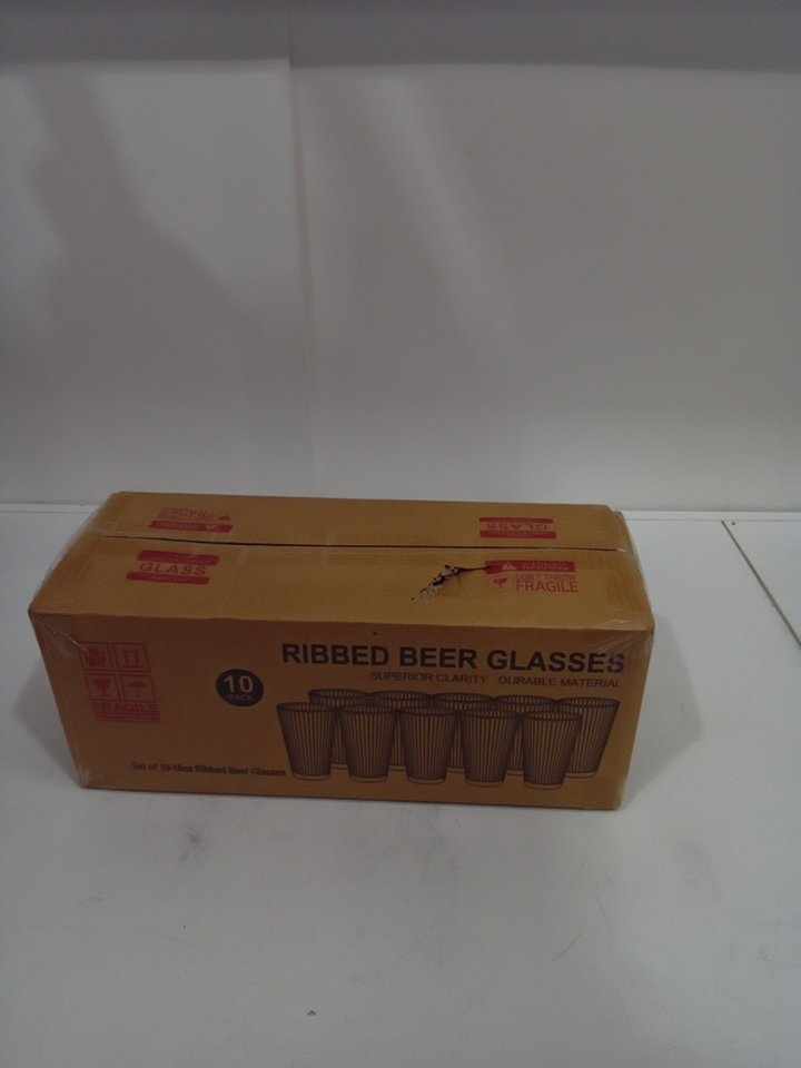 10pk le'raze ribbed beer glasses - 16oz - clear (model: gl919)