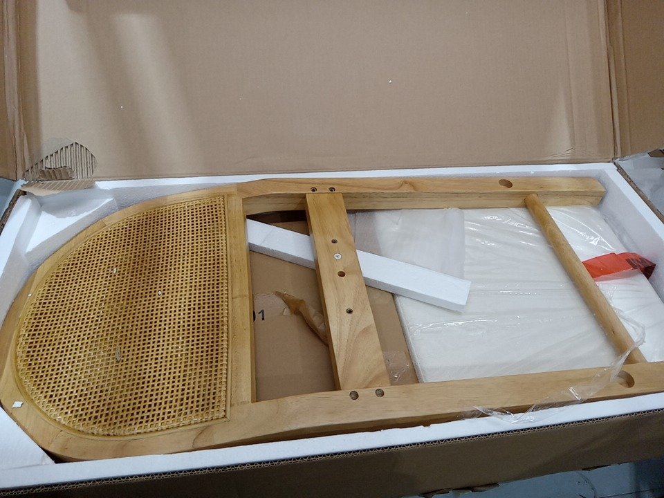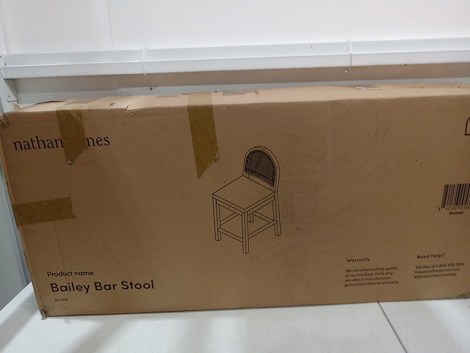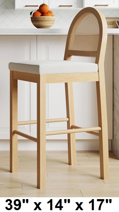 Nathan James Bailey Boucle rattan Bar Stool with Back - 39" x 14" x 17" - light brown/white (MODEL: 23-1026)