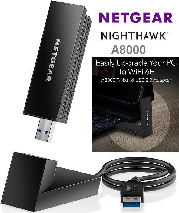 NETGEAR NIGHTHAWK AXE3000 WI-FI 6E USB 3.0 USB ADAPTER (MODEL: A8000)