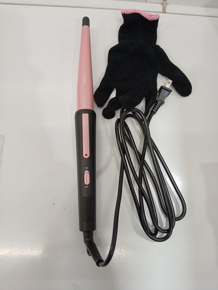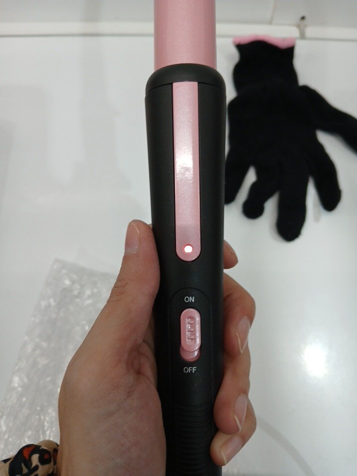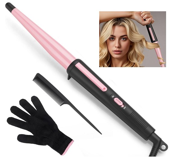 Professional Ceramic Hair Curler Wand with Heat-Resistant Glove - pink - (model ks-c108)