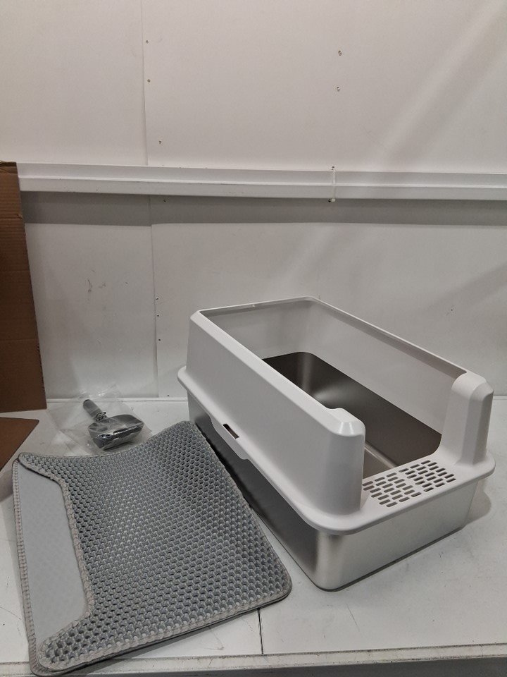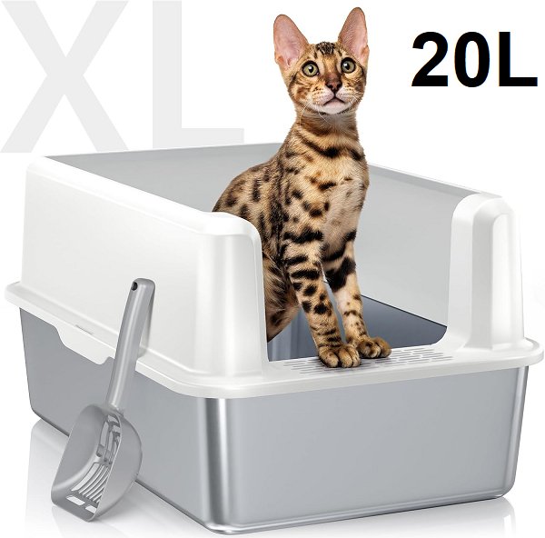 woofigo high wall easy clean cat litter box with litter scoop - extra large - 20l - white / stainless steel (model: sh2803e)