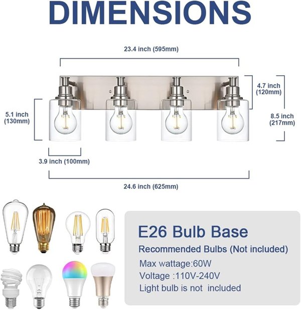 LUCIDCE 4 Lights Modern Light Fixture - 60W 110V-240V - BURSHED NICKEL