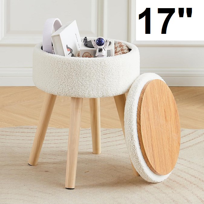 Mxfurhawa Teddy Velvet Round Storage Ottoman Foot Stool - 17" x 12.5" x 6" - white (model: nx48-001-mwt)