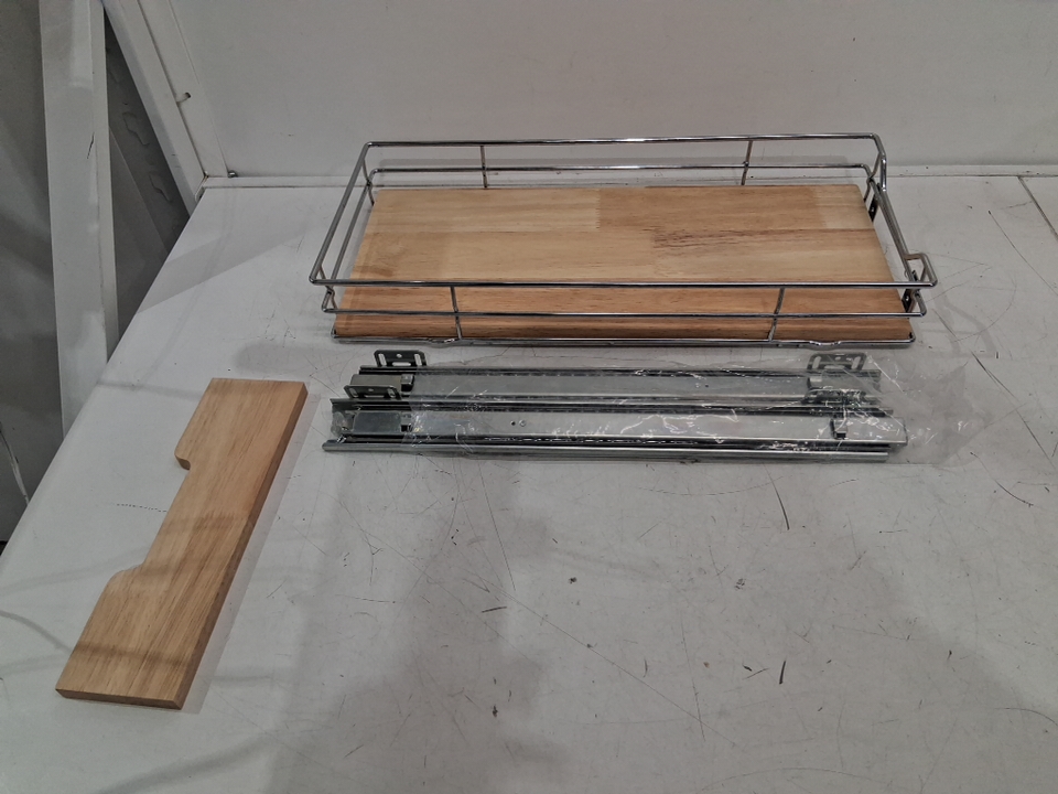 sikarou heavy duty wood/metal wire basket cabinet slide out pull out drawer shelf - 11" x 21" - Light Brown (model: bw421119l)
