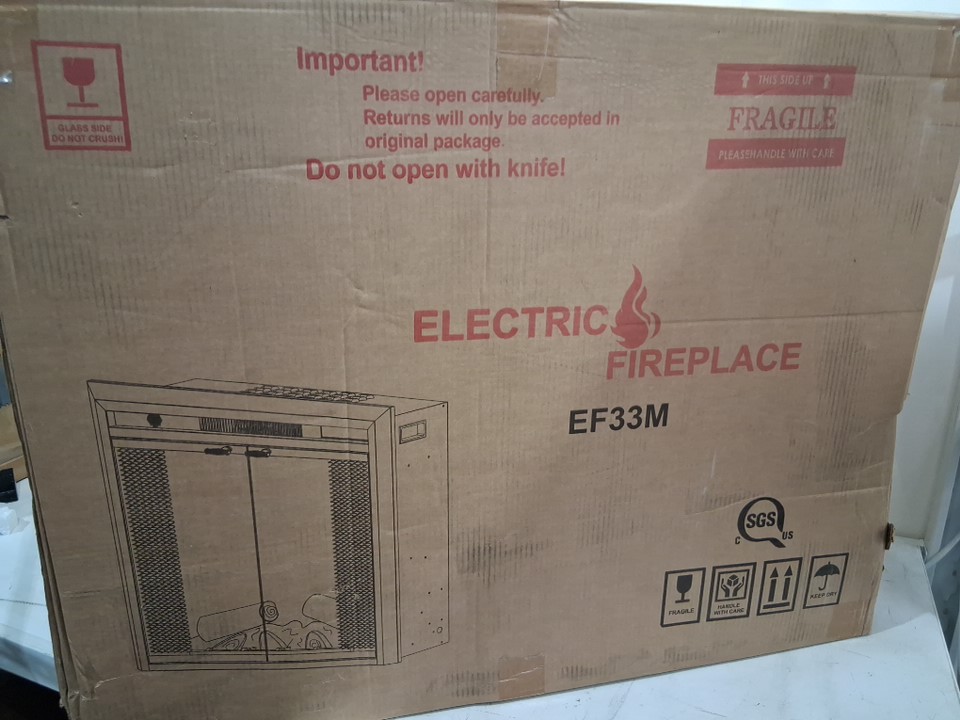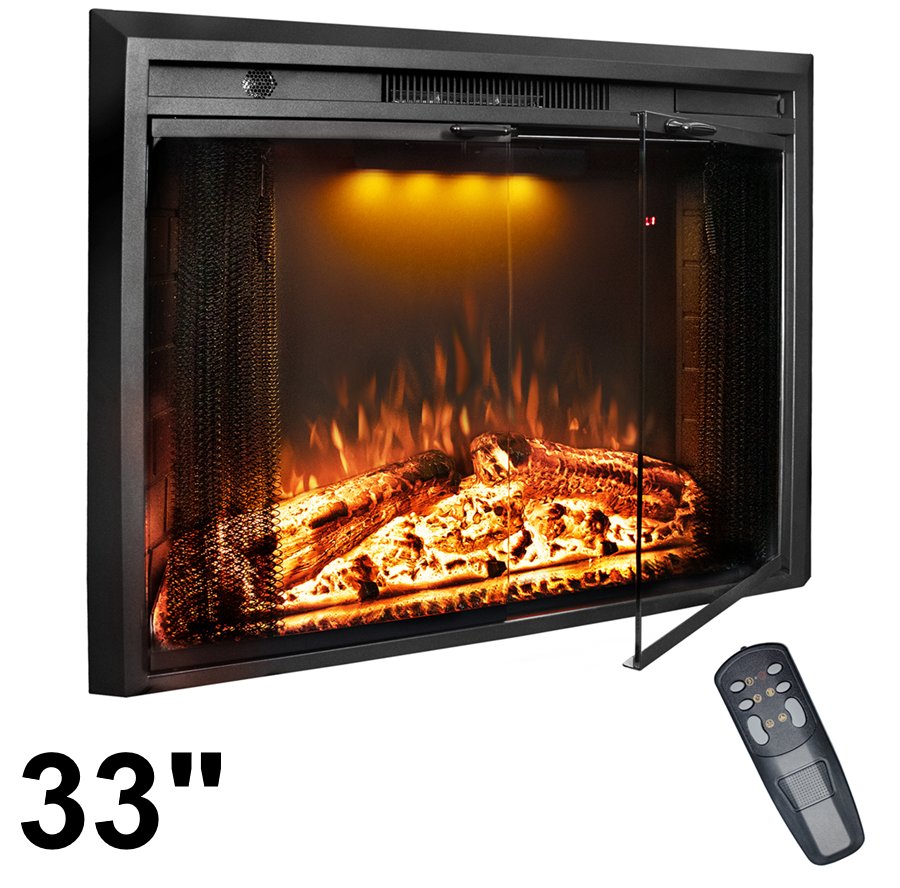 Luxstar Electric Fireplace Heater Inserts with Glass Door Mesh Screen Fire Crackling Sounds Decorative - 33" - BLACK