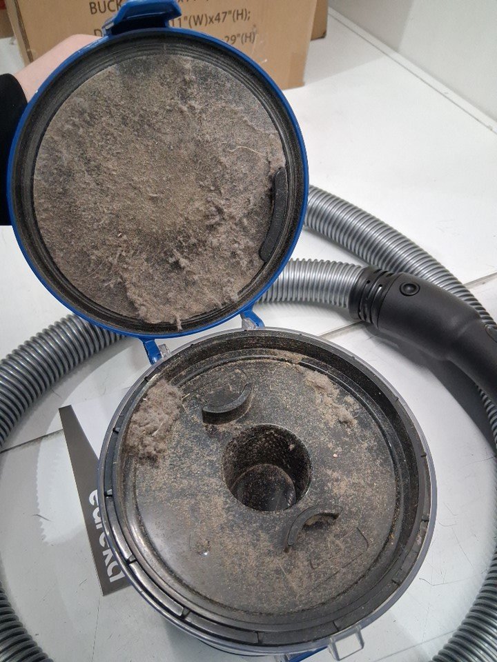 Dirt/dust in canister and brush head, some light scuffs on hose connection and top of brush (see photos) Tested- working