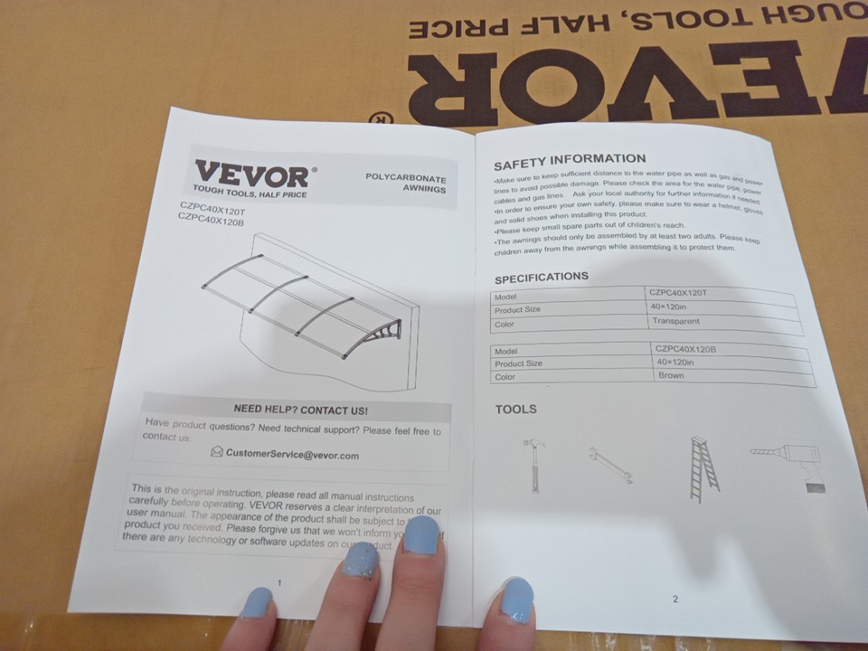 VEVOR D Retractable Door / Window Awning - 78" x 37"x 10" - clear - (model:czpc40x120t)