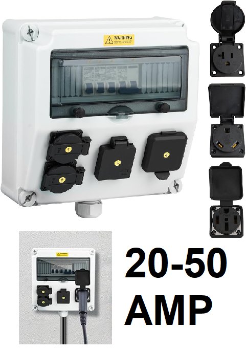 JINDOUZI RV Power Outlet Panel with Breaker - 20-250amp- NEMA 14-50R、NEMA TT-30R、NEMA 5-20 - grey