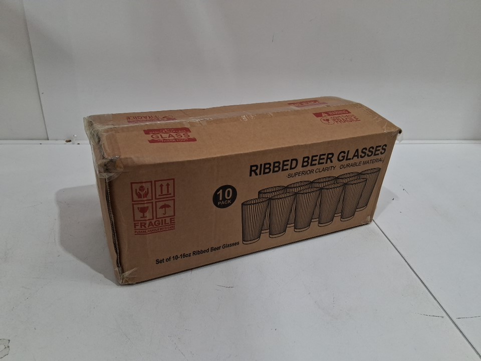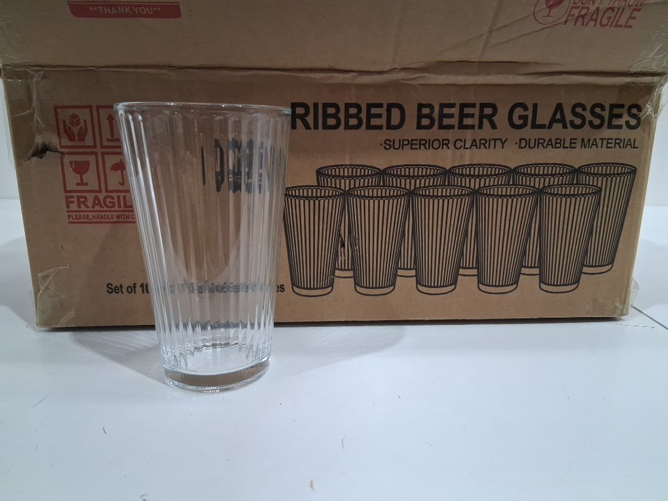 10pk le'raze ribbed beer glasses - 16oz - clear (model: gl919)