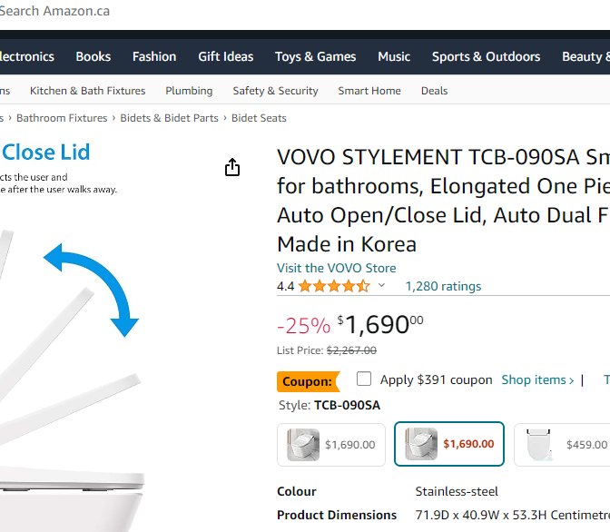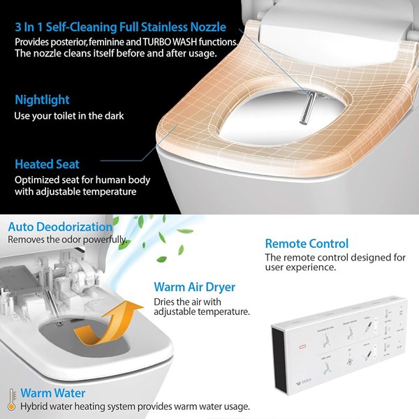 VOVO STYLEMENT Elongated One Piece Smart Bidet Toilet With Auto Open/Close Lid, Auto Dual Flush, Heated Seat - (Model: TCB-090SA)