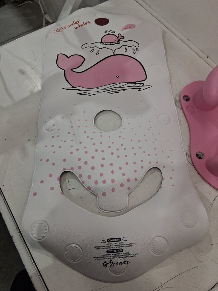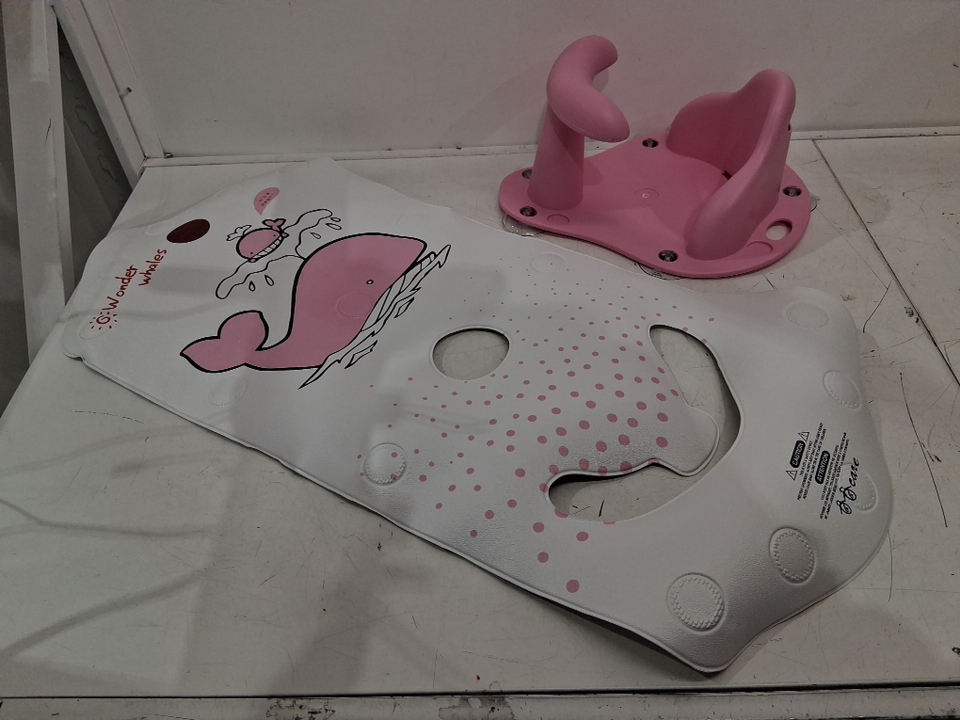 BBCARE NON-SLIP SAFETY BATH SEAT WITH EXTRA LONG BATH MAT & 'hot spot' feature - 15" x 7" - pink whale