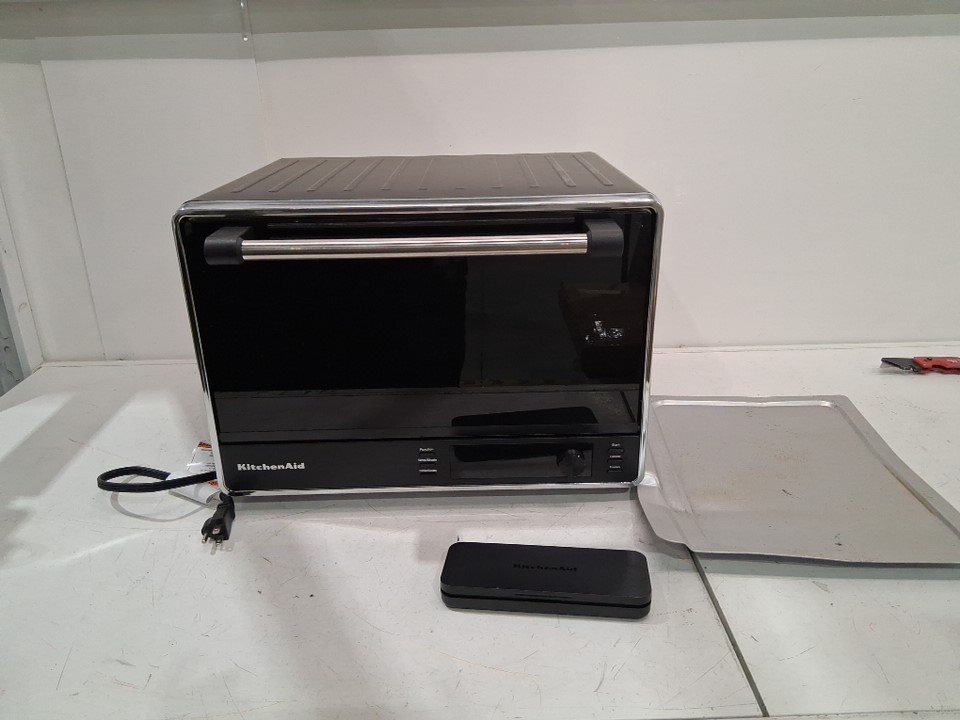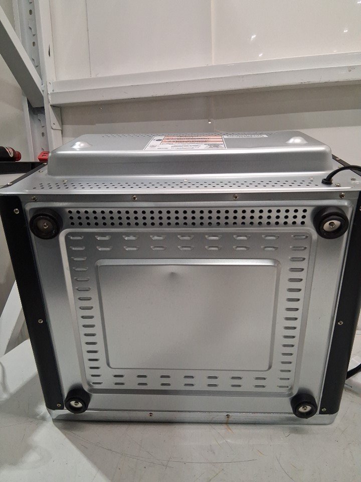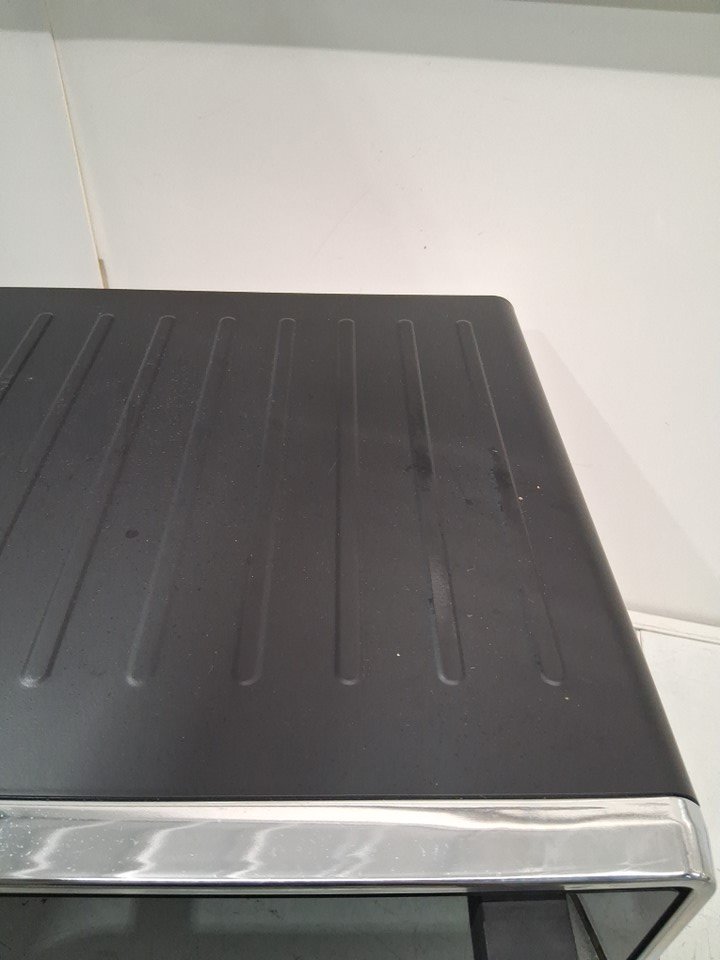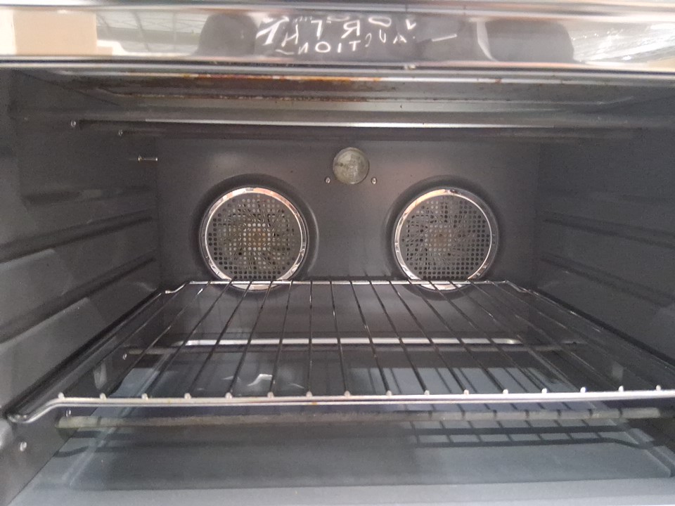 Firstly, we are missing the tray attachments as except the drip tray. But it is significantly bent, we are not sure if it will be able to be bent back into shape and used. Second, there is some grease in and on the door of the oven from previous use. Third, there is a minor dent of the bottom of the item, but we believe it shouldn't affect the function