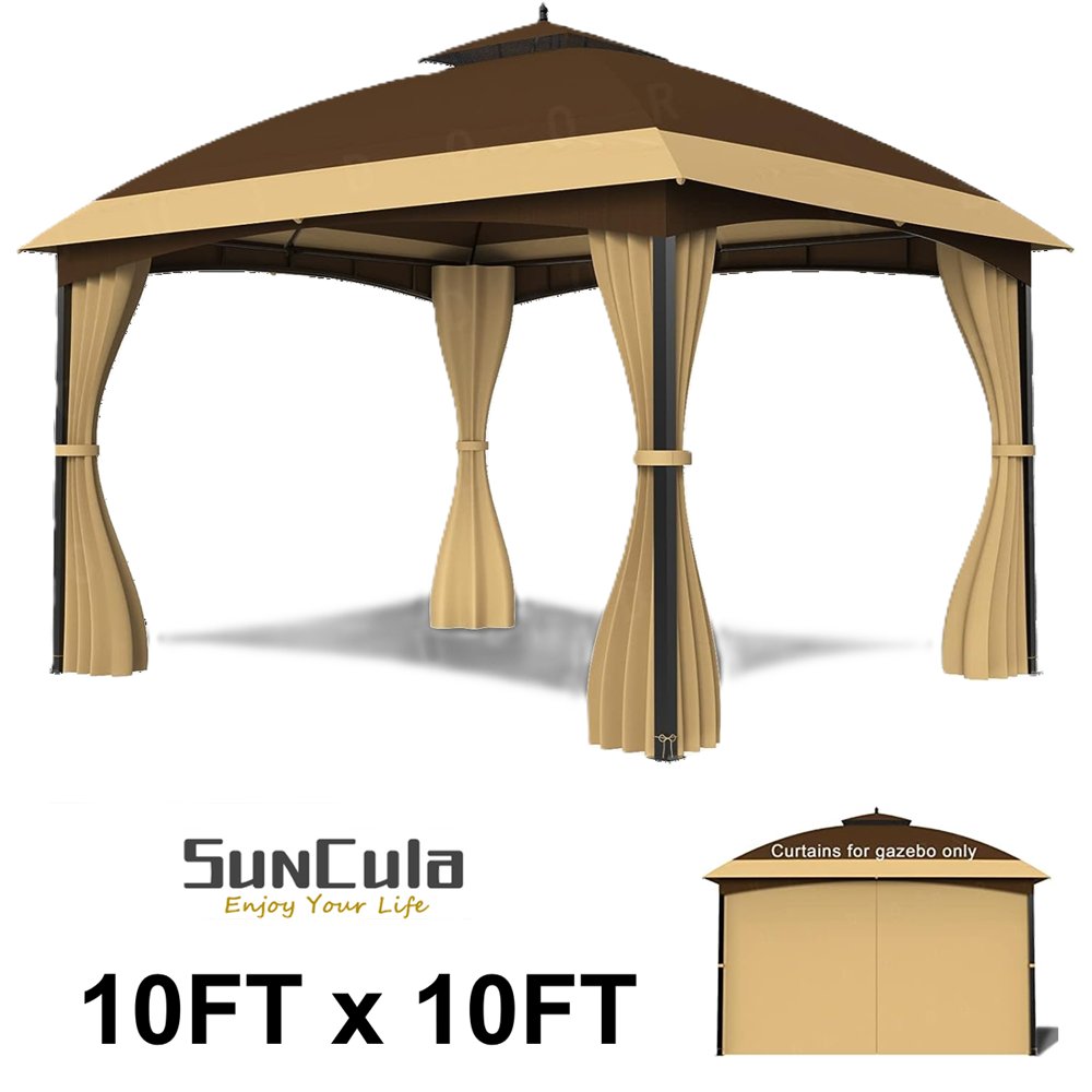 SUNCULA gazebo Privacy Replacement Sidewall 4-Panel Universal Shade Curtains Set - 10ft x 10ft - khaki beige