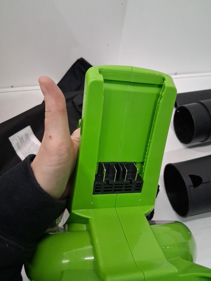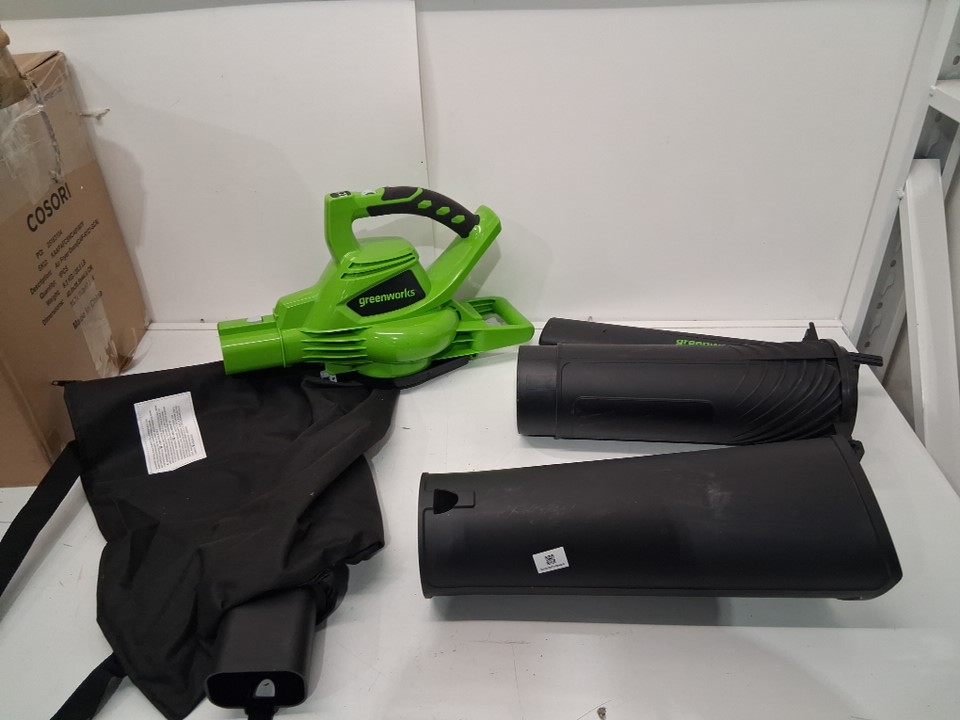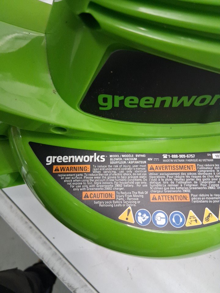 GREENWORKS 2-SPEED LEAF BLOWER/VACUUM **tool only** - 375CFM/230MPH - 12A - GREEN/BLACK (MODEL: BVF443)