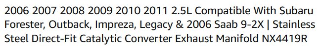 GENERIC Stainless Steel Direct-Fit Catalytic Converter Exhaust Manifold COMPATIBLE WITH 2006-2011 SUBARU FORESTER/outback/impreza/legacy 2.5l - silver (model: 4914)