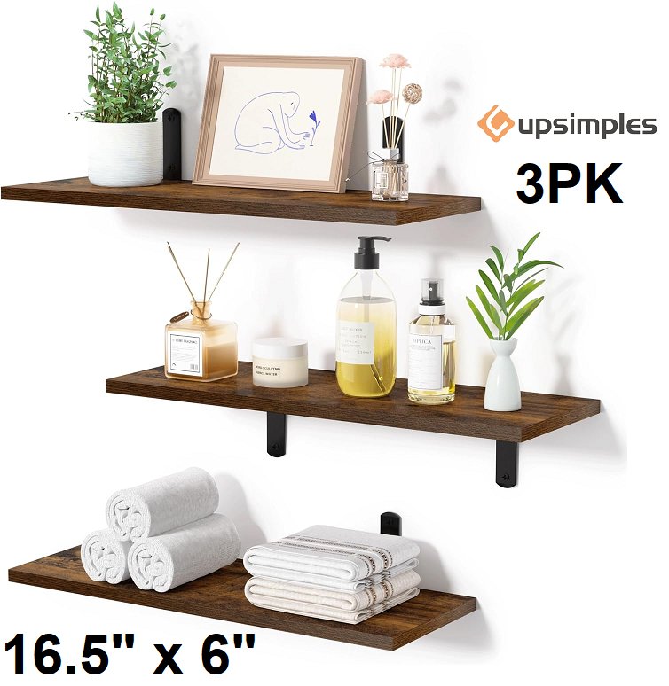 3pk upsimples Floating Shelves for Wall Decor Storage - 16.5 x 6" - brown