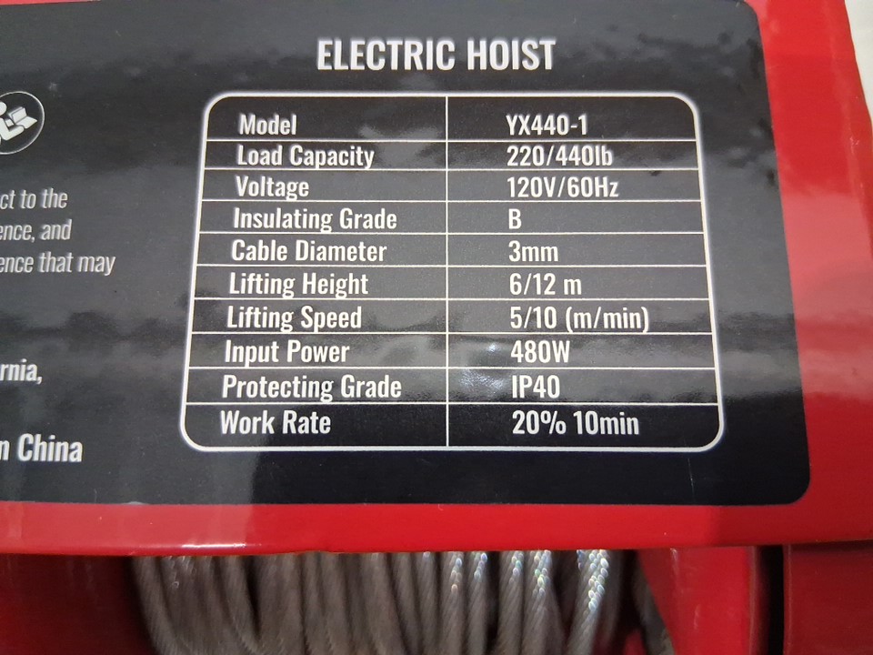 Please note that the hoist has power, but only retracts so it will need to be repaired to function properly