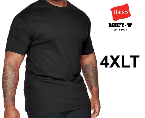 MEN'S HANES Short Sleeve Beefy-t SHIRT - 4XLT - Black