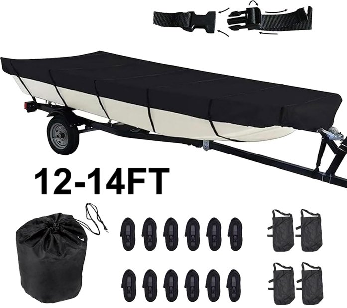 KALINCO Heavy Duty All-Weather Protection Jon Boat Cover - 12-14ft - BLACK