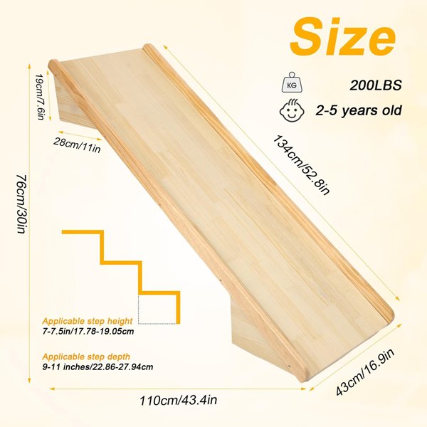 wooden waterproof slide for stairs - 200lb max, 53'' x 43'' x 17'' - brown
