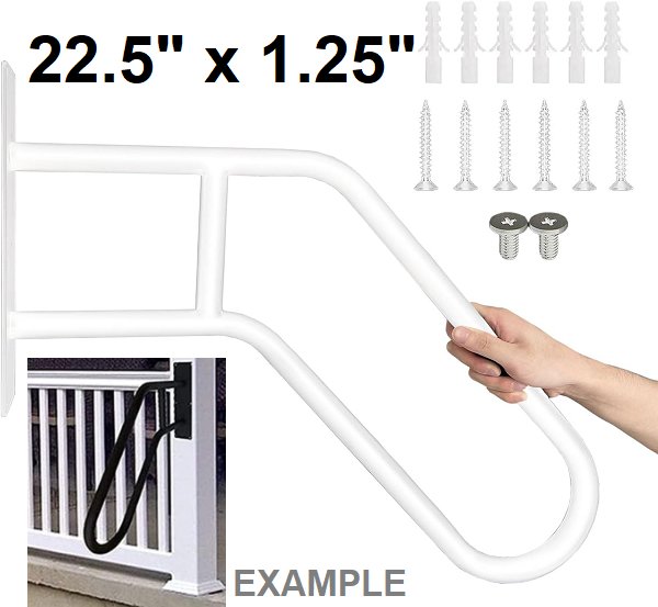 goyappin wall mounted u-shaped handrail for OUTDOOR steps - 1 to 3 steps - 22.5" x 1.25" - WHITE