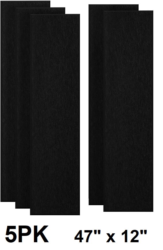5pk Self adhesive sound dampening wall panels - 47" x 12" - Black