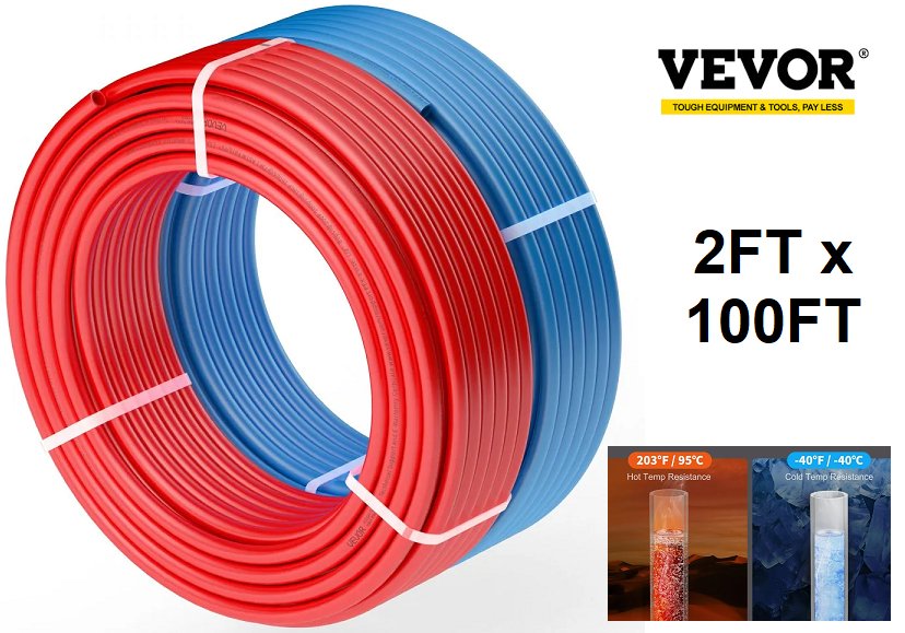 VEVOR PEX Pipe 1/2" 2ft x 100ft PEX-A Flexible Pipe Tubing for Potable Water - blue\red - (MODEL: P128-7-100RB)