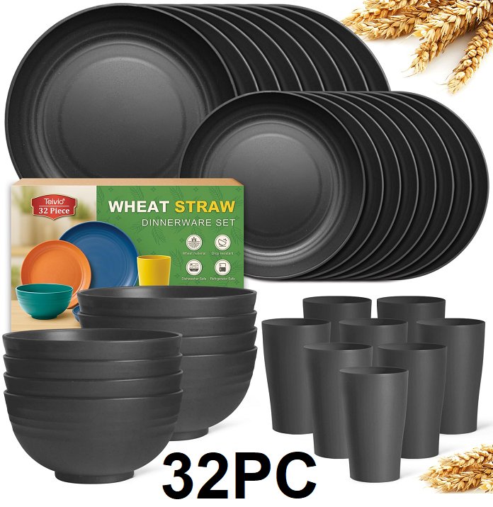 32PC teivio heat Straw Dinnerware Set - black