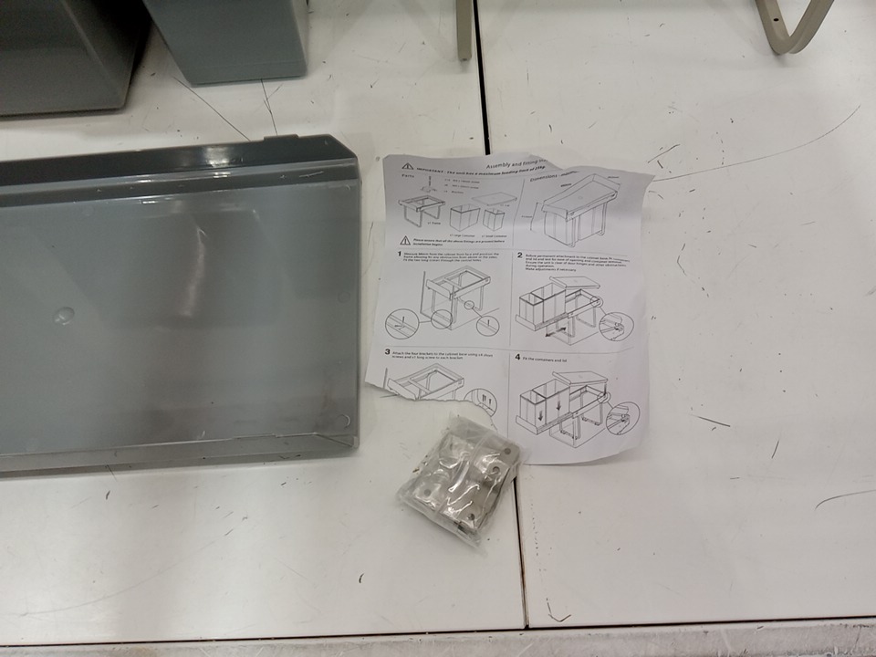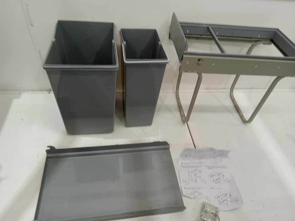 GOOFCXO Dual Pull Out/Slide Out Garbage Bin/can with Lid and Soft-Close Rail - 10L and 20L - grey