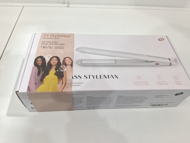 t3 singlepass stylemax professional ceramic flat iron with custom heat automation - 9 heat settings - 1" - white - (model: 77592).