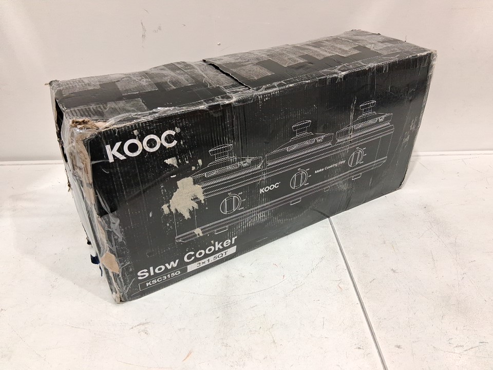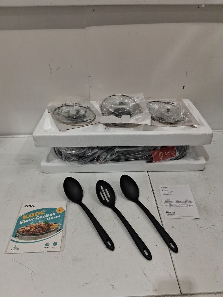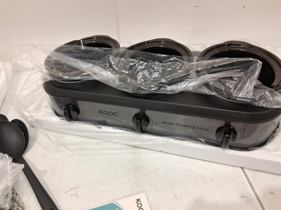KOOC Triple Slow Cooker Buffet Server / Food Warmers with Individual Temp Control, Lid Rests & Spoons - 1.5qt each - grey (model:ksc315g)