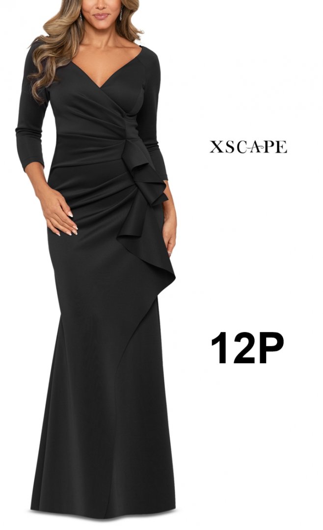 Xscape Ruched Ruffled Gown dress - 12 Petite - black (style: 4452XP)