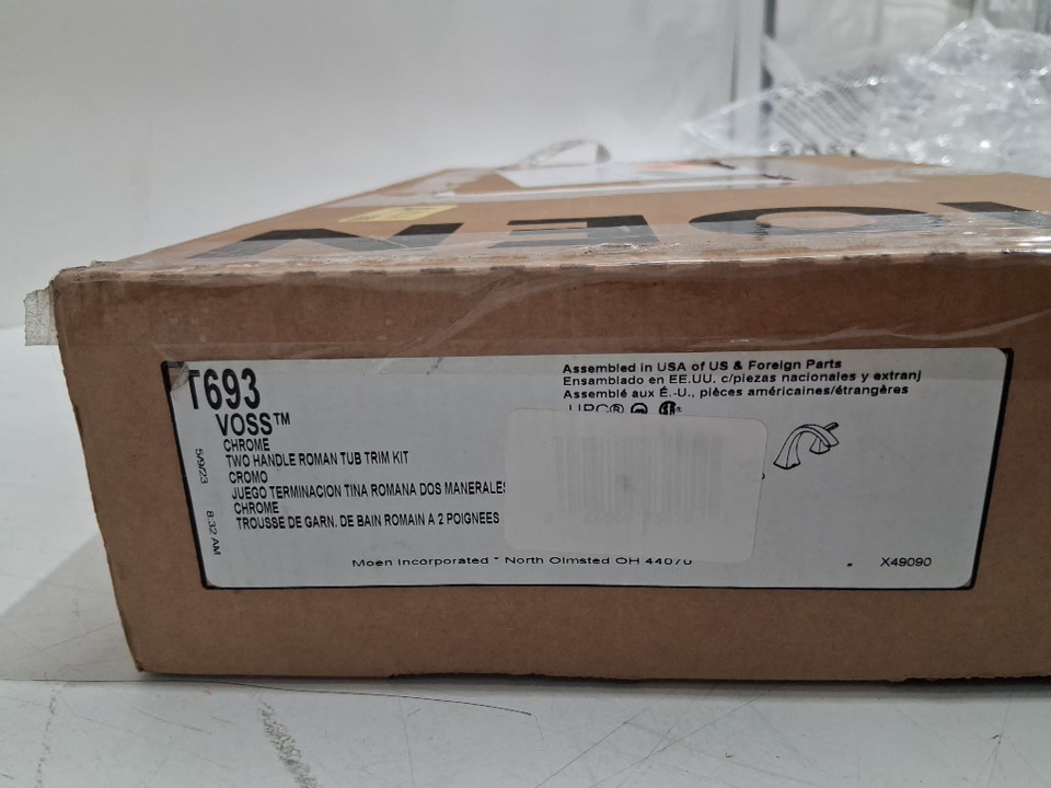 looking online this is not the VOSS style however it could possibly be an older version if it. i am almost certain it is a Moen T990 Chateau Two-Handle Low Arc Roman Tub Faucet Without Valve. please do your own research.