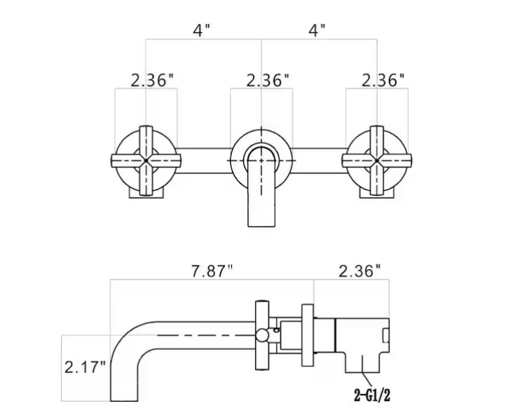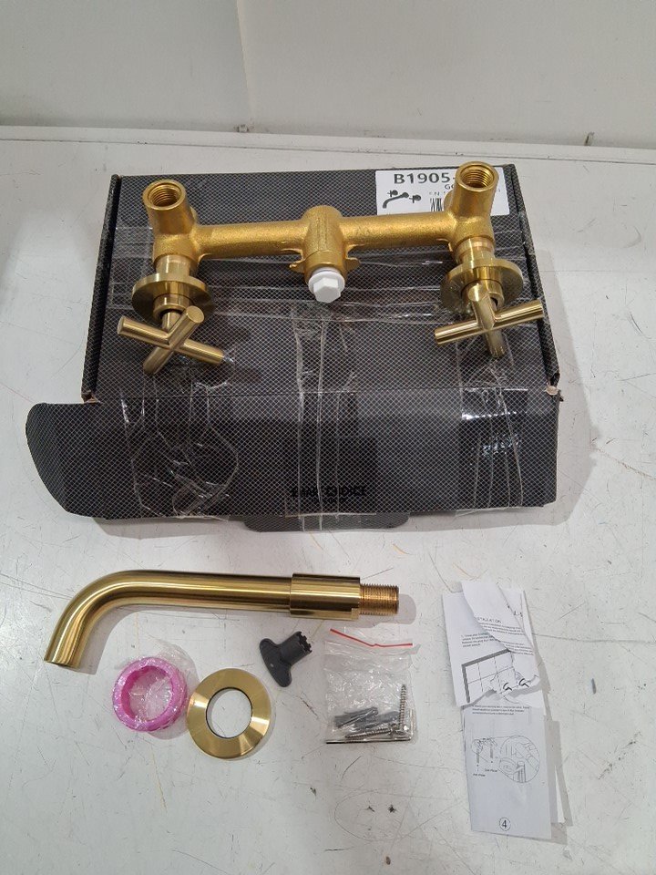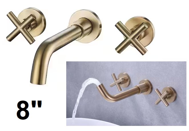 PROOX 2-Handle Wall Mount Bathroom Faucet - 360° Swivel SPOUT - BRUSHED GOLD (MODEL: B1905-BG)